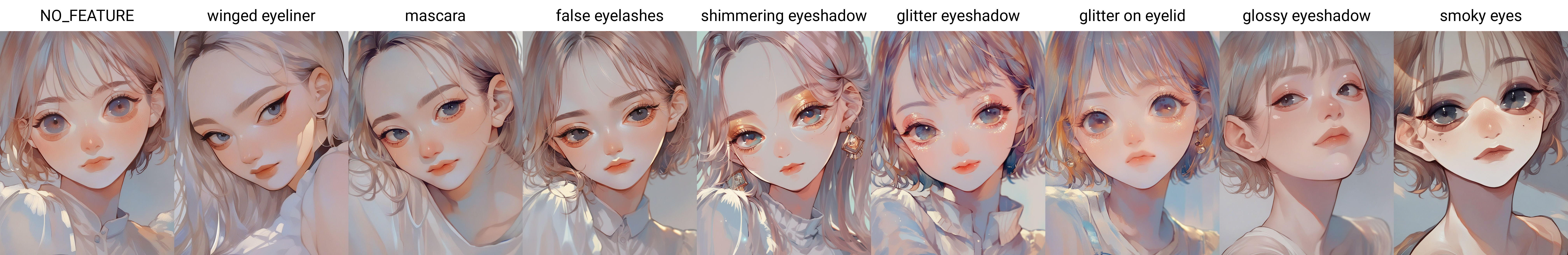 Can be used in conjunction with other keywords. ex. "matte coral lips", "nude shimmering eyeshadow".