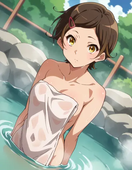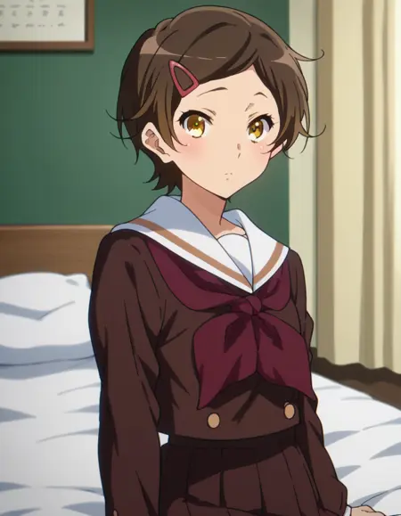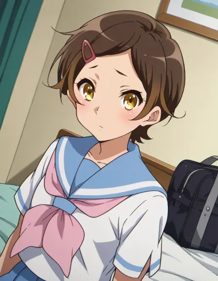 hazuki katou, short hair, brown hair, hair ornament, yellow eyes, hairclip,