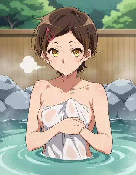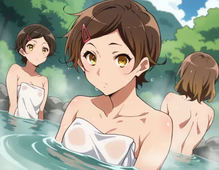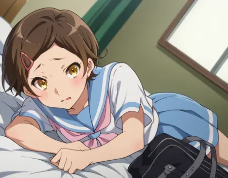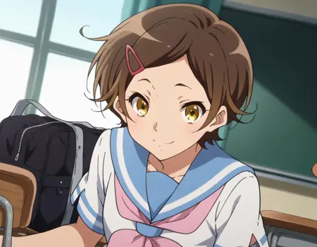 hazuki katou, 단발, 갈색 머리, 머리 장식, 노란 눈, 헤어클립,