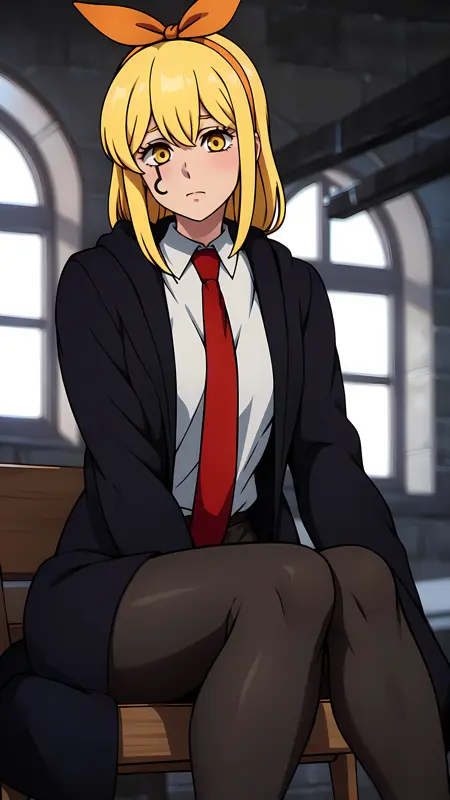 yellow eyes_yellow hair_ sidelocks_hair ribbon_mark face