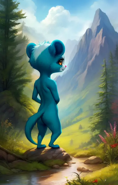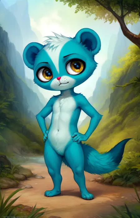 SunilNevlaCartoon, Mongoose, Blue fur, pink nose, golden-yellow eyes