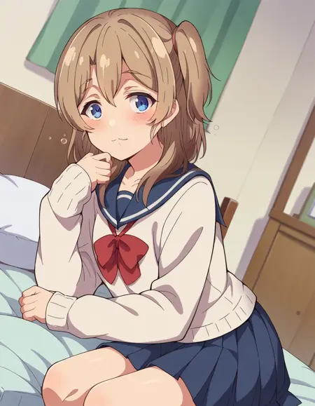 mino saitou, 青い目, 茶色の髪, 片方だけ上げた髪,