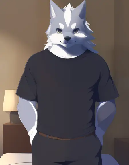 関連単語:グレーの毛、白い毛、ツートーンの毛、体毛、白髪、ミディアムヘア、ロングヘア、濃い眉毛、分岐した眉毛、黒い目、犬の尾、オオカミの尾、犬男、オオカミ男、犬の耳、オオカミの耳、動物の耳、動物の鼻、口吻、青いネクタイ、シャツの襟、袖をまくり上げた、スーツ、ベルト、男性用下着、ブラック男性用下着