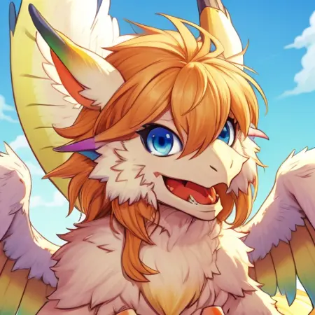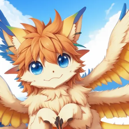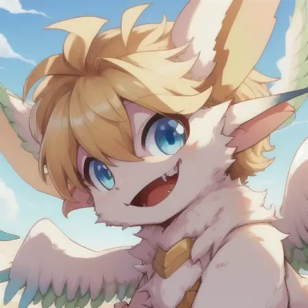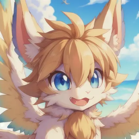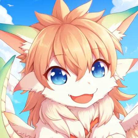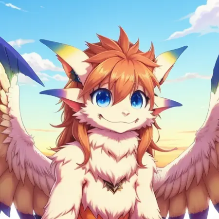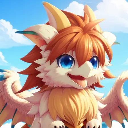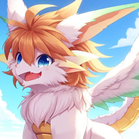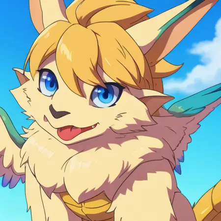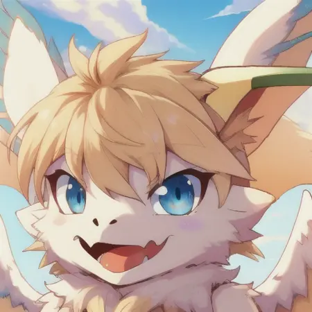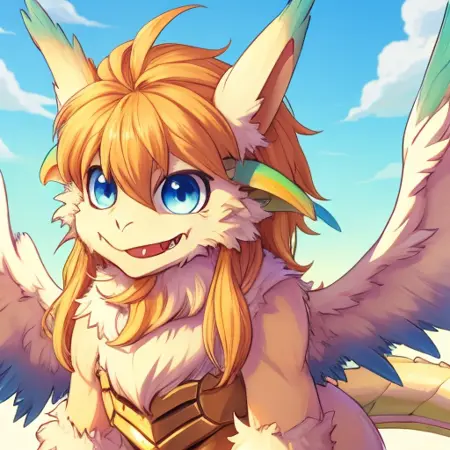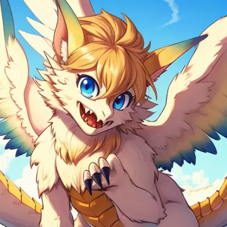 in positive prompt, use words like "wings, blue eyes, fang, tail, blonde hair, fur, no humans"