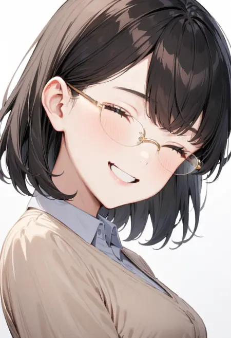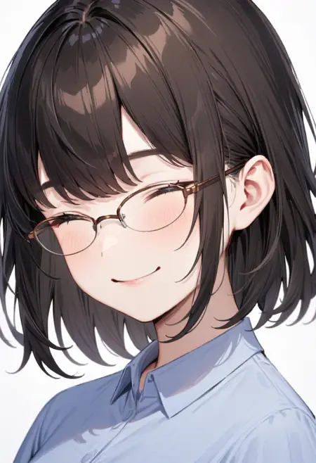 이 LoRA는 금속 프레임의 타원형 하프림 안경을 그릴 수 있습니다.