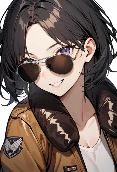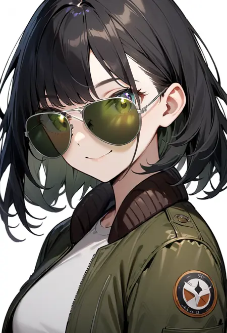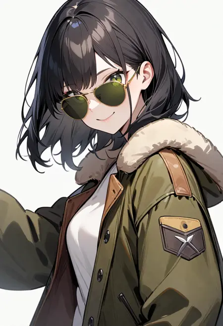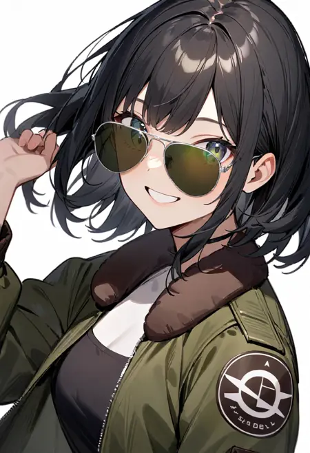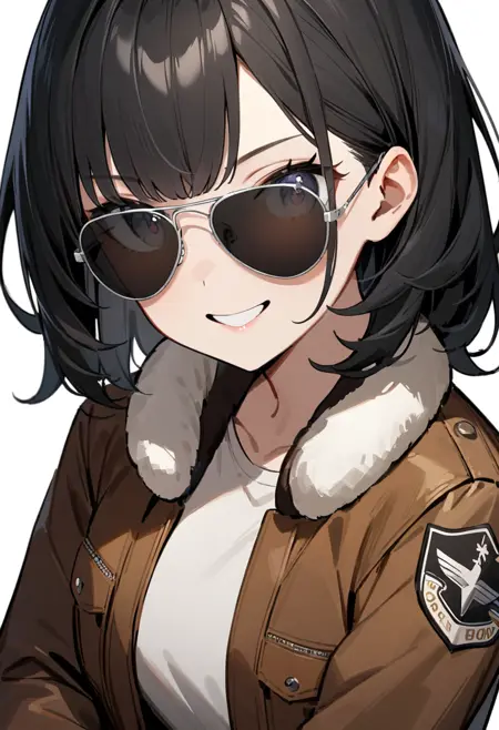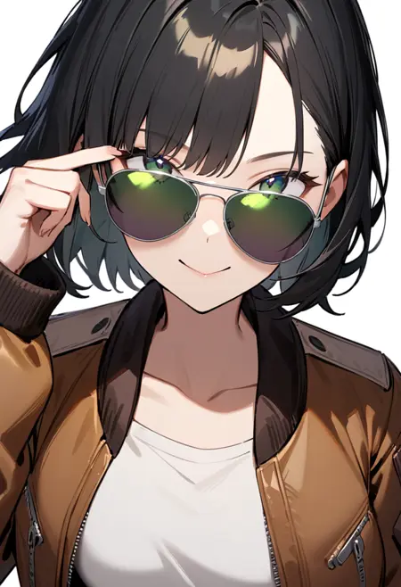 캐릭터가 선글라스를 밀어 올려 눈이 직접 보이는 일러스트가 자주 나오는 것이 걱정된다면, 프롬프트에 "covered eyes"라고 기술하면 캐릭터가 선글라스를 끼고 시선을 보내는 모습이 됩니다.