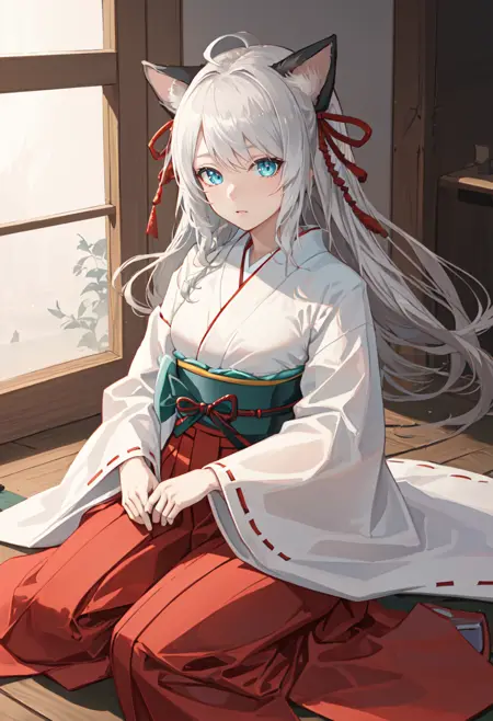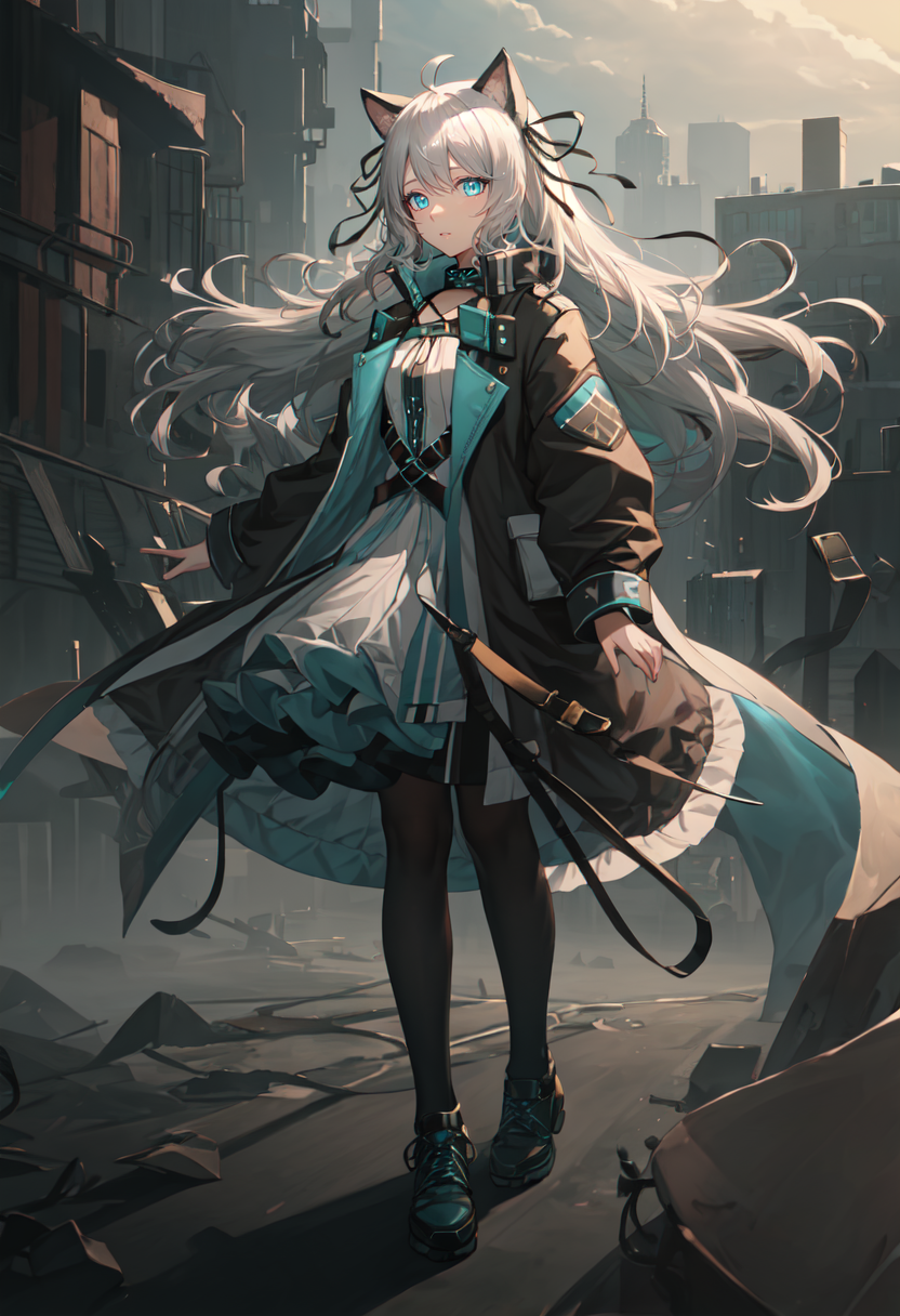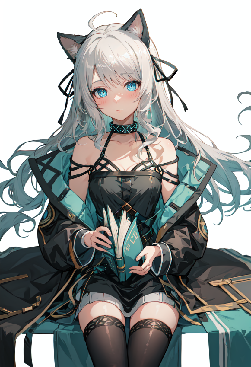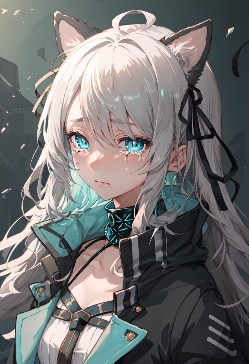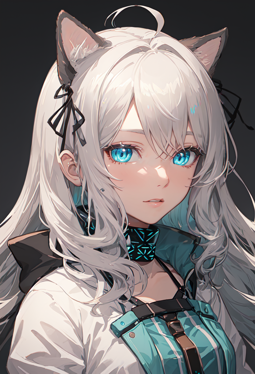 • The pruned character tags are animal ears, cat ears, long hair, ribbon, grey hair, hair ribbon, black ribbon, ahoge, blue eyes, cat girl, tail, cat tail. You can add them into prompts when core features (e.g. hair color) of character is not so stable.
