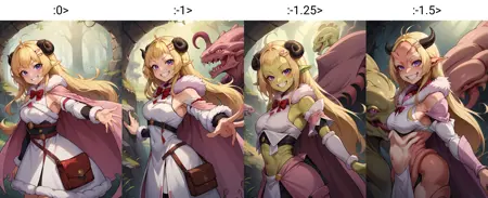 所需权重的高低取决于你的提示词长度、使用的其他LoRA和检查点。权重范围可在 -0.5 到 -2 之间。