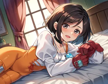 바디수트, 초커, 장갑, 보석, 줄리엣 소매, 긴 소매, 목걸이, 주황색 바디수트, 펜던트, 퍼프 소매, 빨간 장갑,