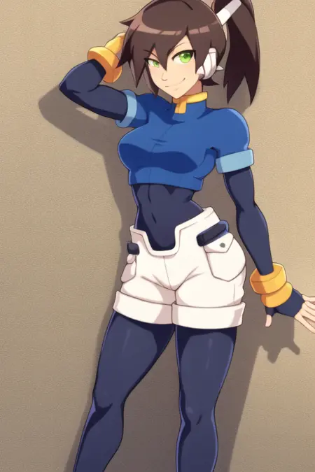 메가 맨 ZX의 애일이! 갑옷은 포함되지 않았지만 긴 머리카락 프롬프트는 ZXA 버전과 매우 유사합니다.