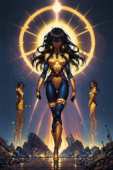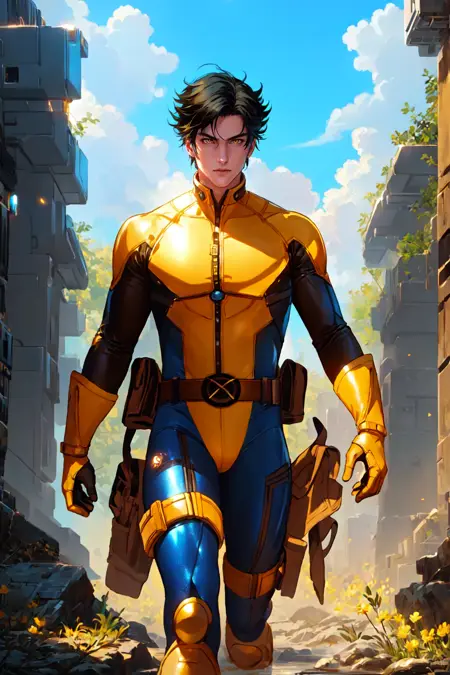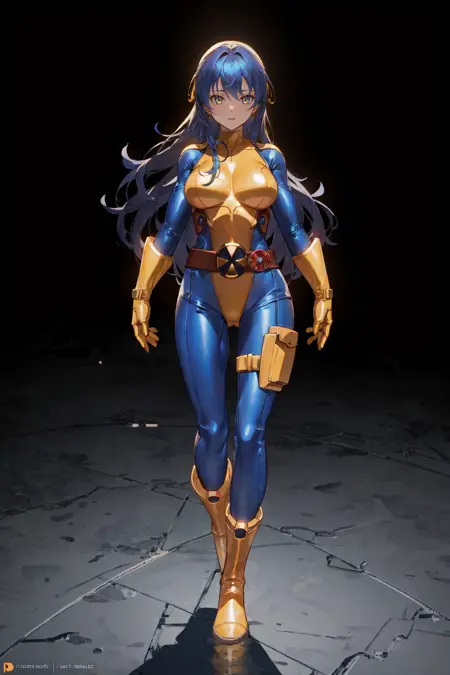X-men Blue training uniform, popularized by Jim Lee in the late 80s and early 90s - this is largely the uniform used in the DANGER ROOM training. Although variants exist throughout the last 20-30 years -- 90% of the dataset for all three versions is the original Kubert/Lee etc artwork.