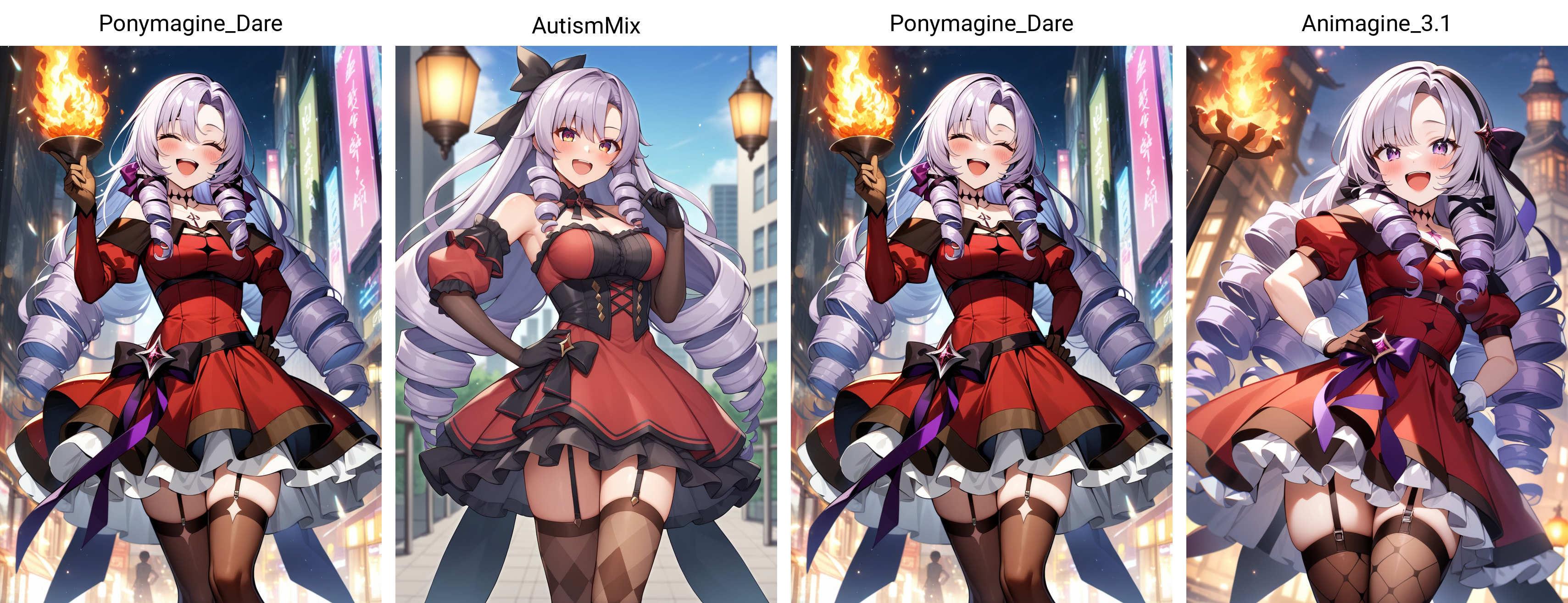 *- Some Pony LoRAs might not work fully, but at least they won't produce flaky noise anymore at least based on my testing. Any additional TE merging to improve Pony LoRA will lead to loss of Character/Artist knowledge of the Animagine model