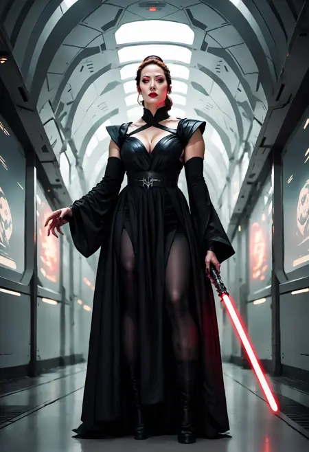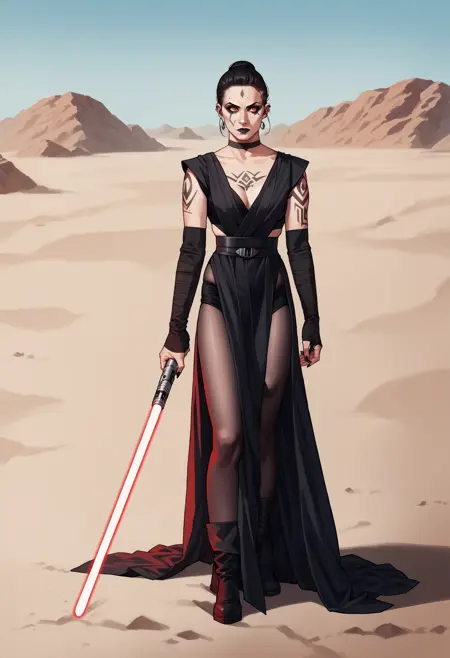 - 基础触发词为 "sith outfit",但若想与其他 LoRA 搭配使用,建议添加 "black robe, sith robe"。