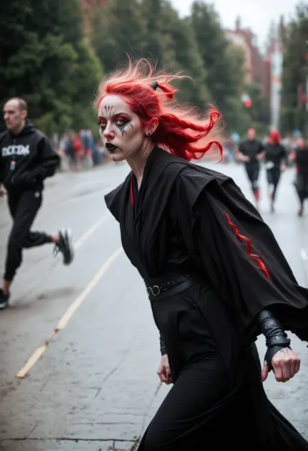 - Flux 在默认情况下生成西斯服饰非常出色,但此 LoRA 会带来略微不同的美学风格,尤其体现在西斯脸彩上。除此之外,它生成的披风较少,长袍更多,腰带也有所不同。我将准备一些对比图以突出差异。