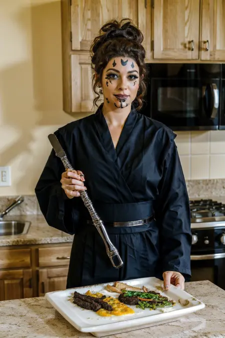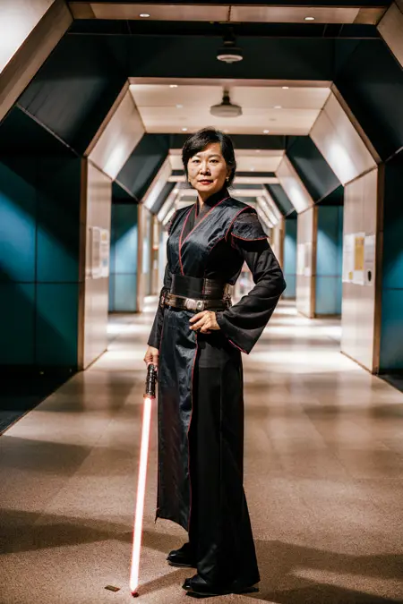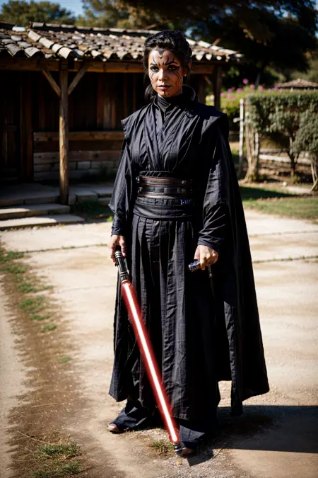-When prompting for a more unusual scenario use "sithoutfit robes" prompt to reinforce the lora, in this cases the difference between version with lora and without will be more visible.
