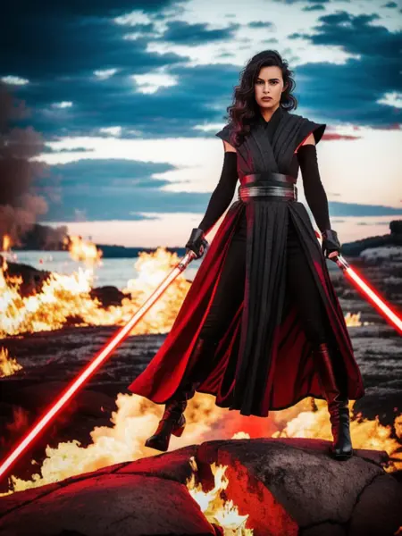 - 基本的なトリガーは「sith outfit」ですが、別のLORAと組み合わせる際には「black robe, sith robe」を追加すると効果的です。