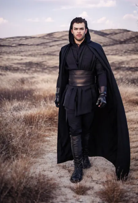 -Basic trigger is "sith outfit", but if you are trying to pair it with abnother LORA its good to add "black robe,sith robe".
