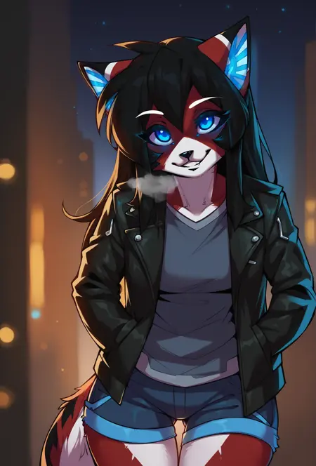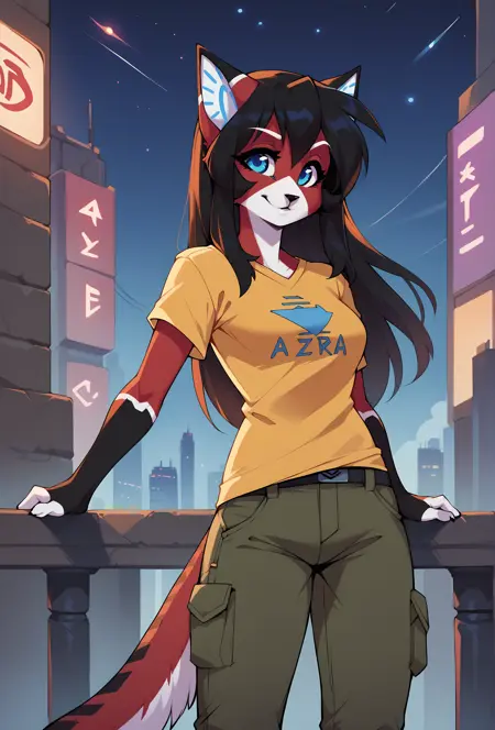 它喜欢在她的衣服上生成蓝色三角形,不知为何。蓝眼睛并非必需,但有时有助于增强眼睛的轮廓感。你可能需要明确提示 蓝色乳头、蓝色阴部、蓝色肛门、蓝色爪垫。这些部位通常默认颜色正确,但有时表现不稳定。