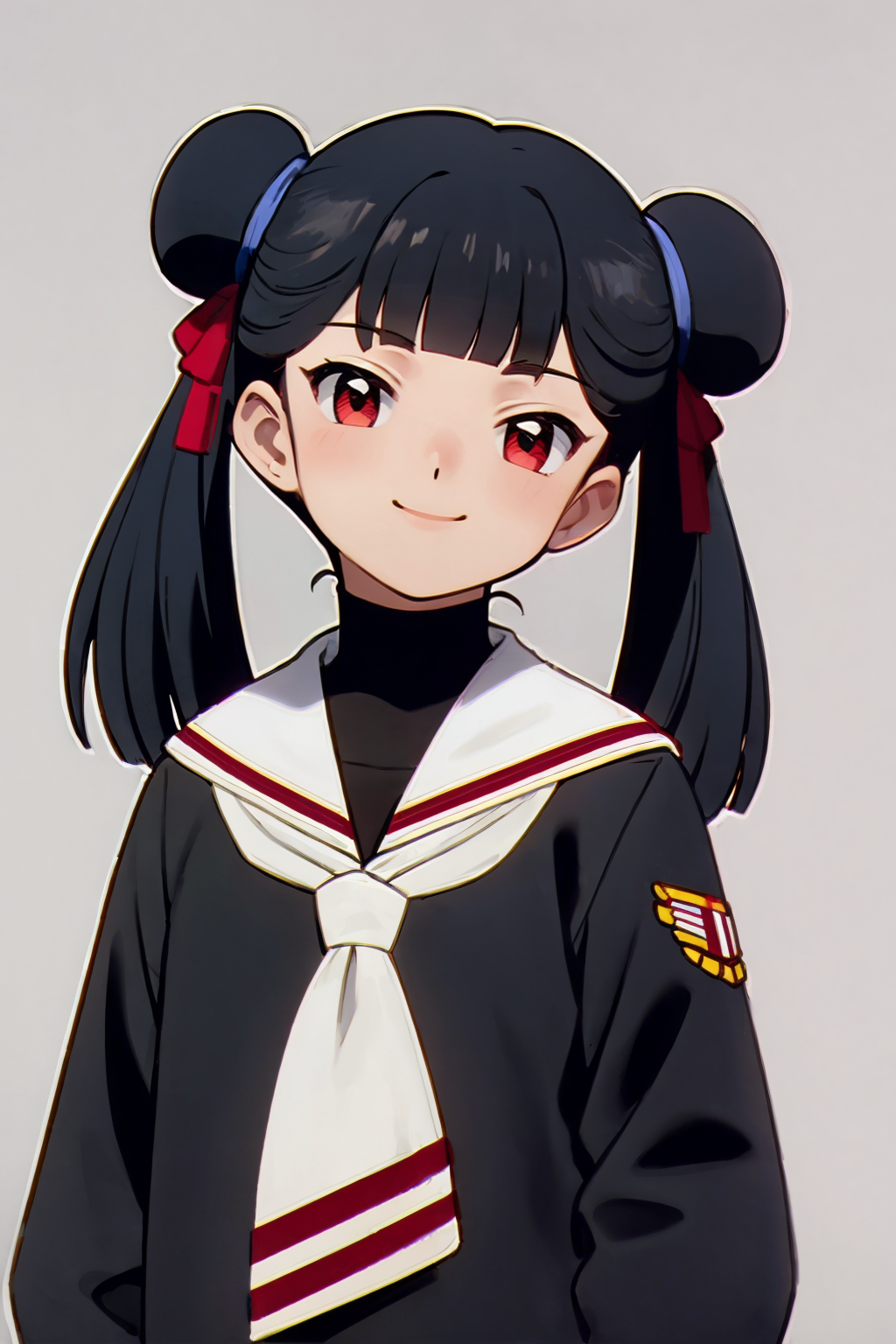 기본 프롬프트: 1girl, meilingli, black hair, blunt bangs, double bun, twintails, long hair, red eyes