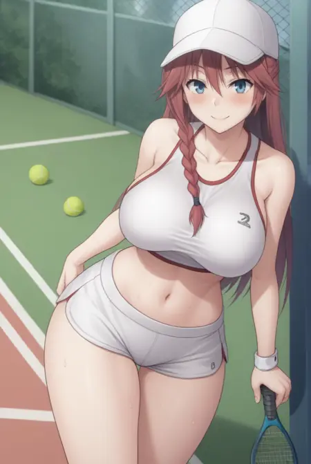 셔츠만 포함: ["lillith asami, blue eyes, red hair, long hair, side braid, single braid, hat, beret, white shirt, collared shirt, sleeveless shirt, black necktie, pleated skirt, black skirt"]