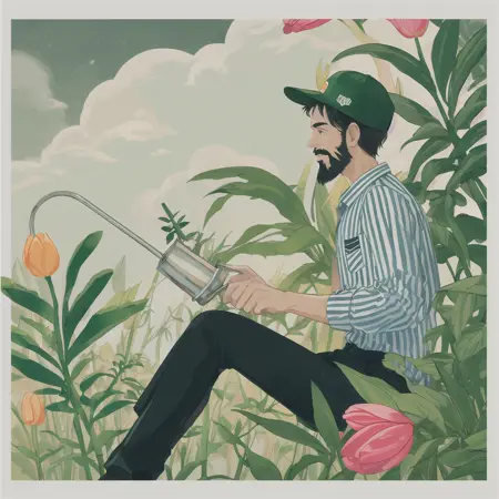 标签方面,和V1版本一样,我建议使用“Slight retro color, flat, grainy, riso print style, illustration, cute, white space, low saturation,”剩下的大家可以自由发挥。