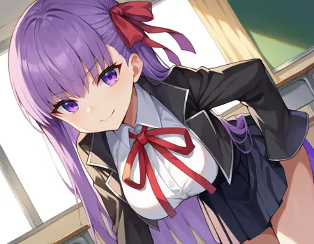 bb, purple hair, long hair, bangs,