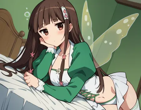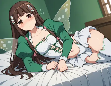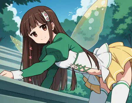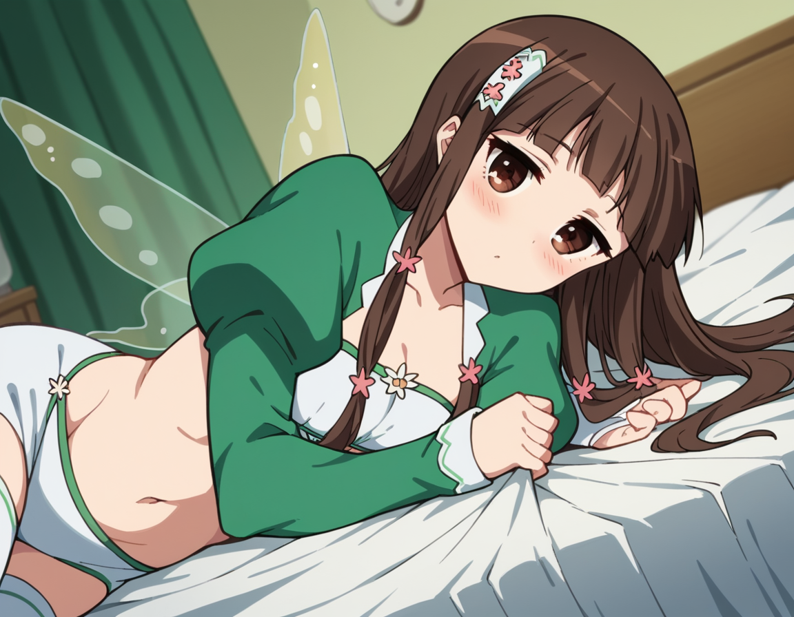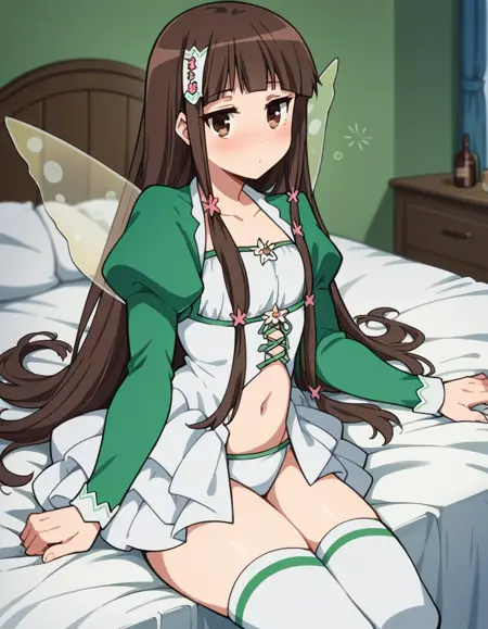 妖精の翼, ジュリエット袖, 長い袖, おへそ, フリル袖, 太ももハイ, 白い太ももハイ, 翼,