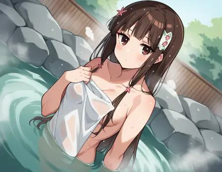 koborii, 茶色の目, 茶色の髪, 長い髪, 髪の花, 髪飾り, 横髪,