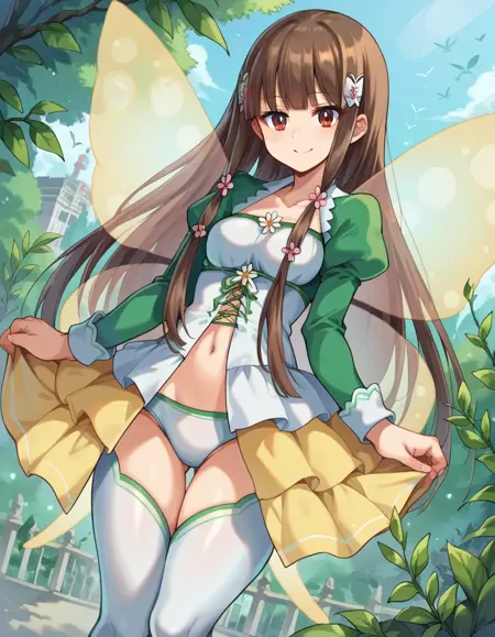fairy wings, juliet sleeves, long sleeves, navel, puffy sleeves, thighhighs, white thighhighs, wings,
