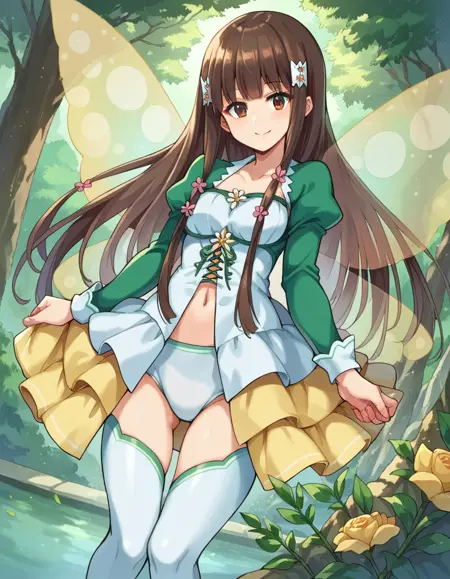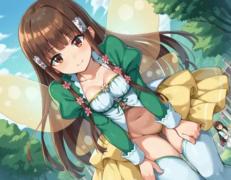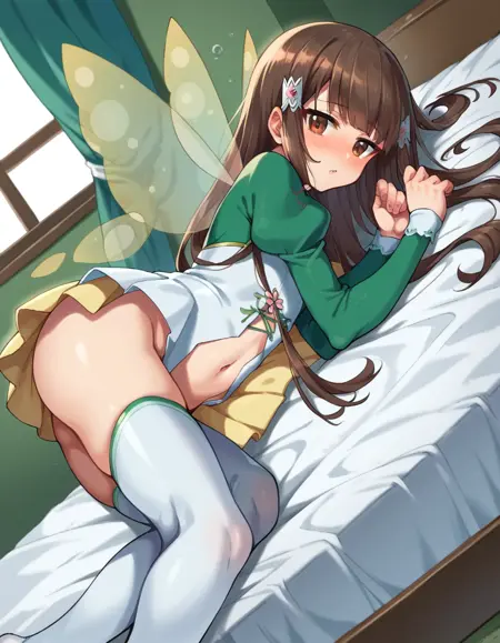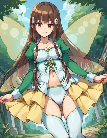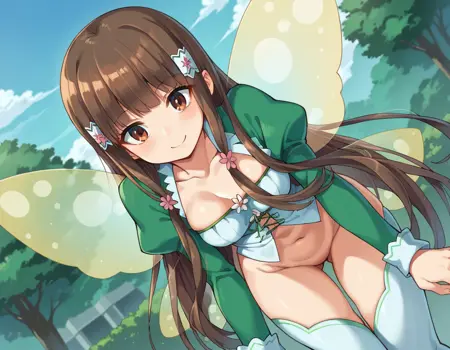 요정 날개, 줄리엣 소매, 긴 소매, 배꼽, 불룩한 소매, 허벅지 양말, 흰 허벅지 양말, 날개,