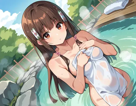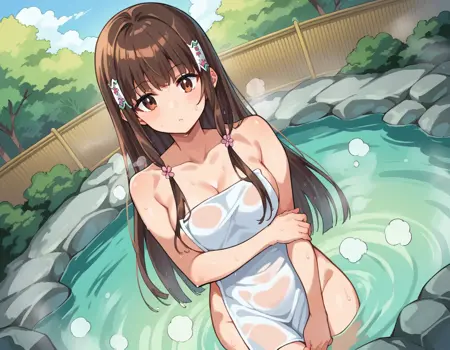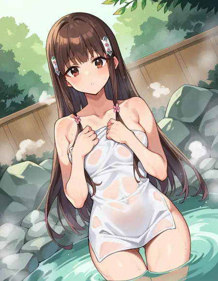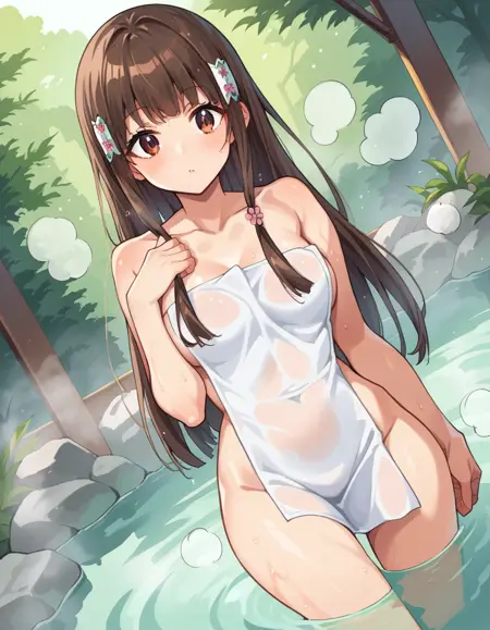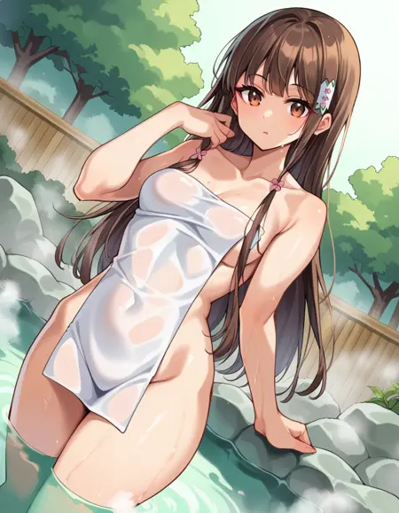 koborii, 갈색 눈, 갈색 머리, 긴 머리, 머리 꽃, 머리 장식, 옆머리,