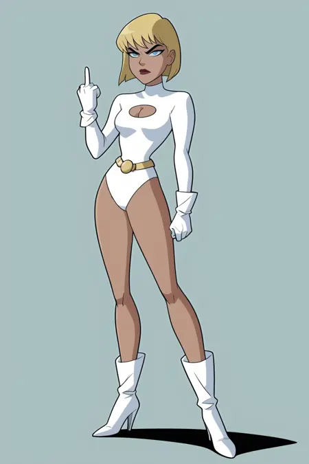 Supergirl/Powergirl from "Justice League Unlimited". I recommend using 0.7 strength but anywhere from 0.7 to 1 should be fine. All images are made using the AutismMix_Confetti model found here on CivitAI. There are 3 different outfits that this Lora was trained on, her original outfit with the white shirt and gloves, the powergirl outfit, and her later outfit with the blue shirt. Adding "retro artstyle" will give you a closer art style to the orginal show, and on the flip side of that, adding "retro artstyle" to the NEGATIVE prompt will make it easier to use a different artstyle.