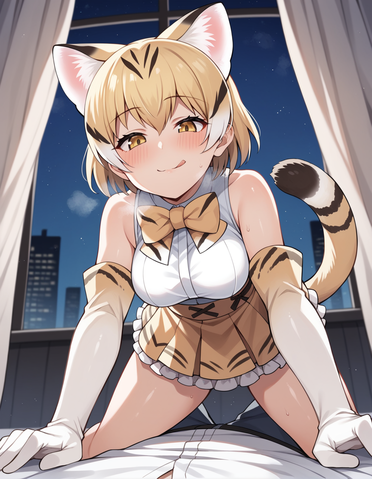 触发词:沙猫 \(kemono friends\), 1girl, 猫娘, 猫耳, 金发, 短发, 黄眼睛, 猫尾