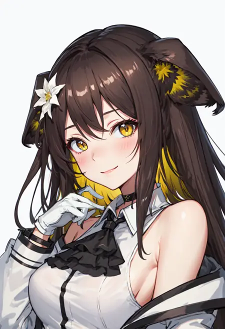 触发词为 folinic_arknights,剪枝标签为 brown_hair, long_hair, animal_ears, yellow_eyes, hair_ornament, hair_flower, breasts, multicolored_hair, cat_ears, blonde_hair, medium_breasts。当某些特征(例如发色)有时不够稳定时,您可以将这些标签添加到您的提示词中。