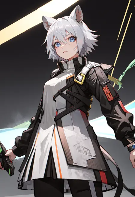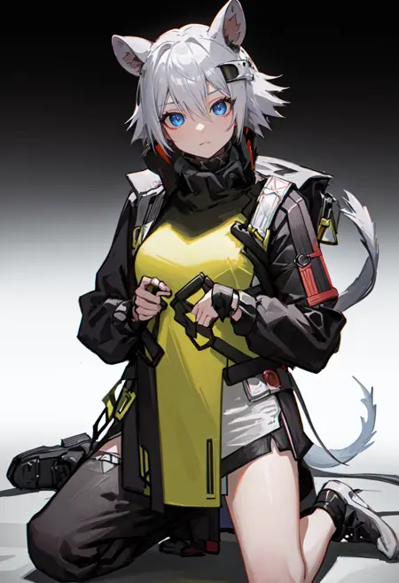 トリガーワードはclick_arknights、削除されたタグはanimal_ears, short_hair, mouse_ears, grey_hair, mouse_girl, black_headwear, hat, baseball_cap, blue_eyes, ears_through_headwear, tail, mouse_tail, hair_between_eyesです。あるときキャラクターの一部の特徴(例:髪の色)が不安定な場合、これらをプロンプトに追加してください。