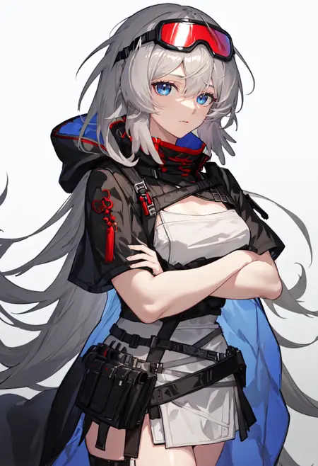 - 省略されたキャラクタータグは、長髪、灰色の髪、青い目、胸、非常に長い髪、頭にゴーグル、目と目の間に髪です。キャラクターの主な特徴(例:髪の色)が安定しない場合、これらのタグをプロンプトに追加できます。