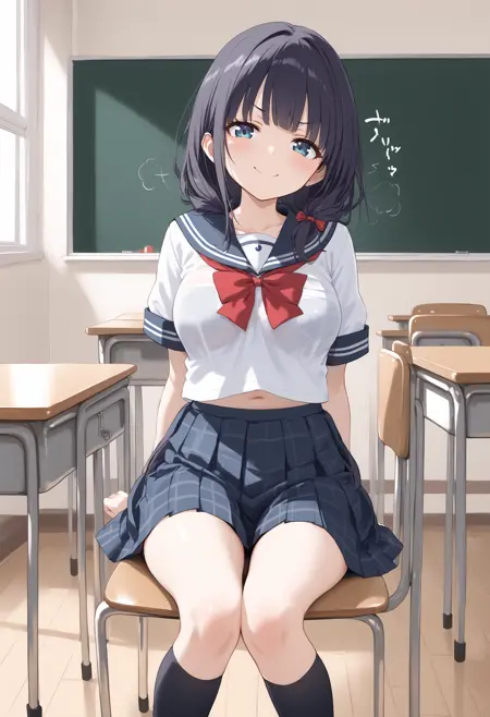 由于角色常呈坐姿,若希望其站立,请添加“standing”;若希望其闭眼呈现恍惚陶醉的表情,请添加“closed eyes”。