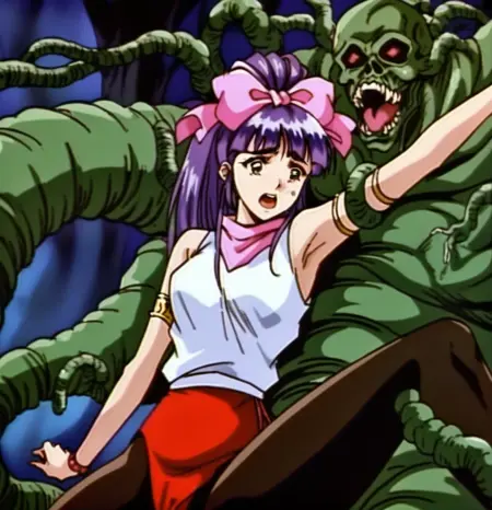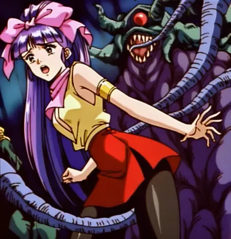 Injū Gakuen La Blue Girl의 학습 이미지로, 오래된 애니메이션/헌티 스타일의 저화질 룩을 구현했습니다.