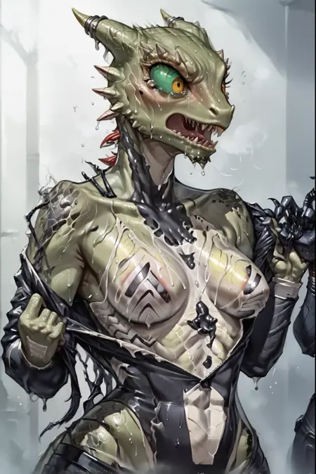至于模型的权重,你可以随意设置,不会变得更差。我个人使用的是 1.0 的权重。触发词是:Female_Argonian。不过,生成图像后请务必进行高清放大,因为面部渲染仍有问题,但放大后会得到改善。