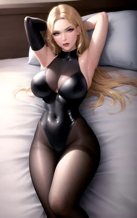 1girl, large breasts, lips, long hair, makeup, blue eyes, blonde hair, lipstick, toned,