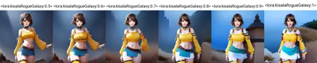 『ローグ・ギャラクシー』に登場するかわいい宇宙海賊のキサラ。このゲームはPS2の優れたアクションRPGであるにもかかわらずそれほど知られていないため、ヒロインに独自のLoRAをつける価値があると考えました。 :)