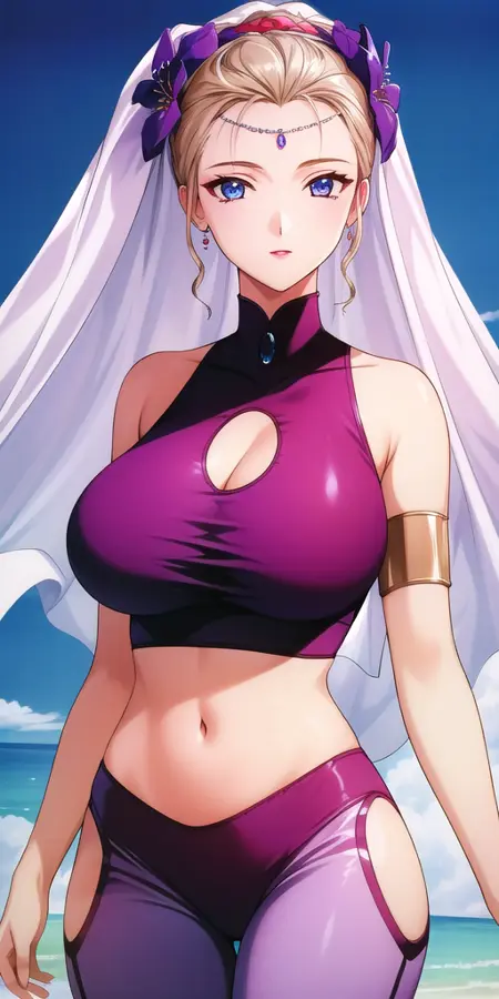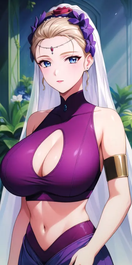 arabian_clothes_Purple_crop_top_Puffy_pants_Armlet_jewel_Cleavage_cutout:彼女のクラシックなアラビアンナイトスタイルの衣装。裸体用にトレーニングしました。Flower_headdress、ヴェール、サークレット、blue_shawlと組み合わせて使用してください。