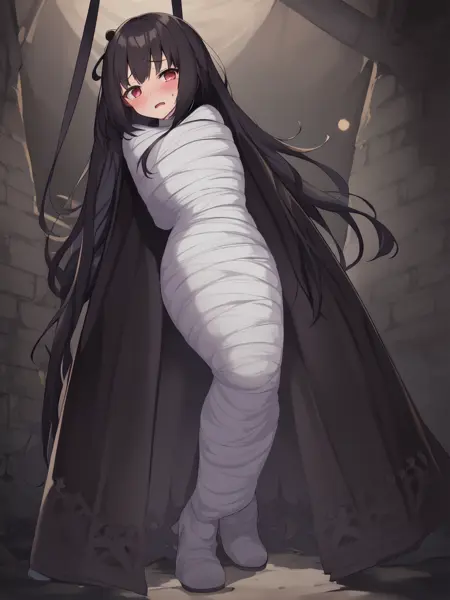 辅助标签可根据你想要的囚禁效果自由组合。若希望从颈部到脚踝完全包裹,请使用 cocoon;若希望网状物下露出衣物,请省略此标签。