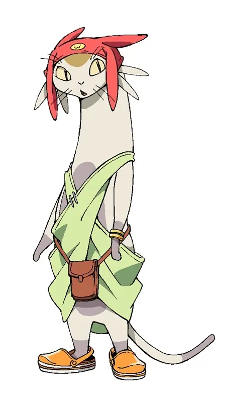 Illustrious Tags: meowspacedandy, solo, full body, 1boy, red hat, yellow sclera, sleeveless dress, fanny pack, bracelet, cat tail, crocs