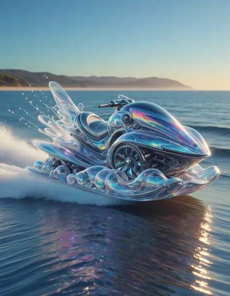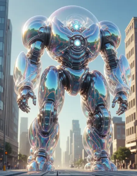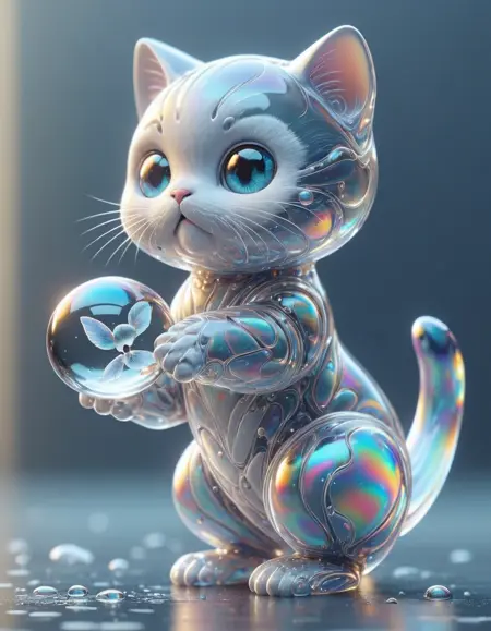 • 可进一步添加 "transparent, iridescent , see-through, inflated," 以获得更佳生成效果。