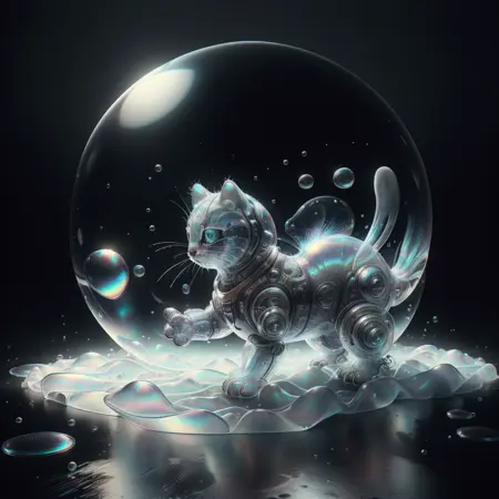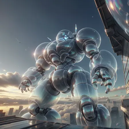 transparent, iridescent , see-through, inflated," 以获得更佳生成效果。