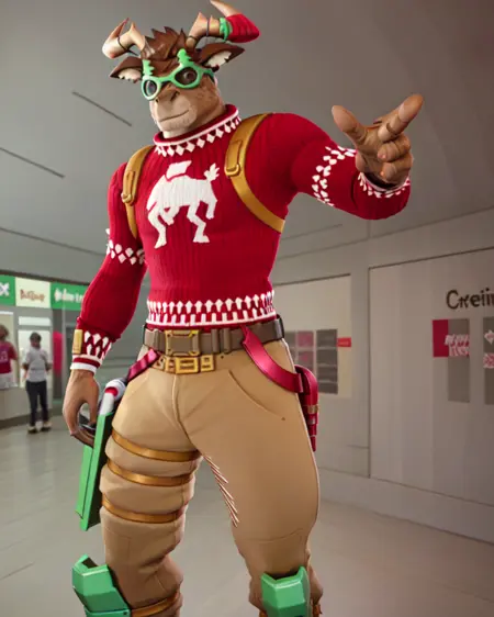 I am the Reindeer Czar, so I created my first LORA, of Dolph from Fortnite. This depicts him really well I think.