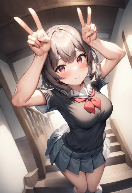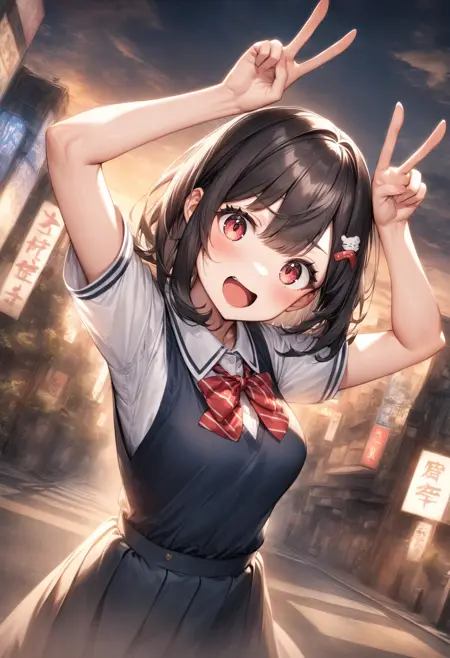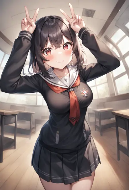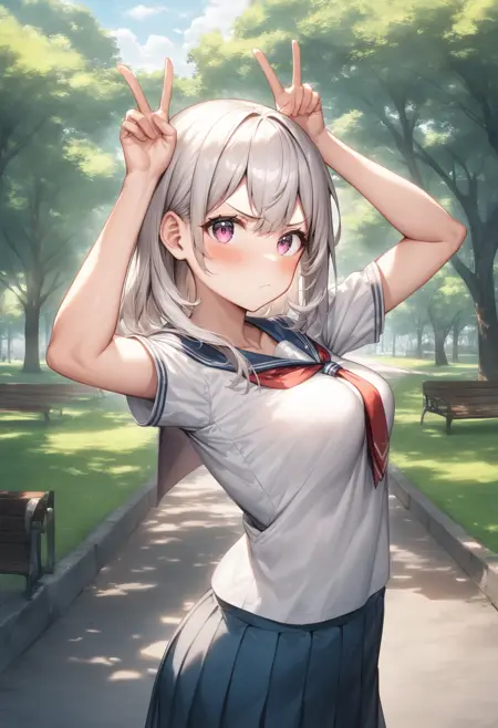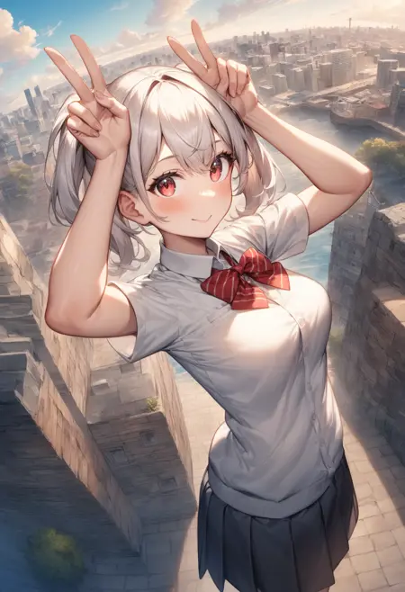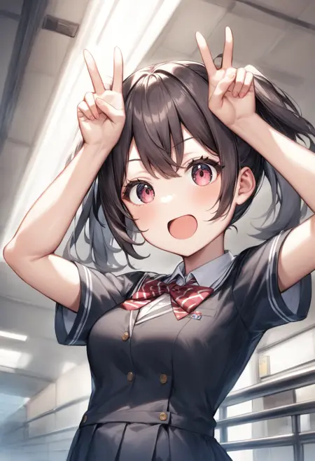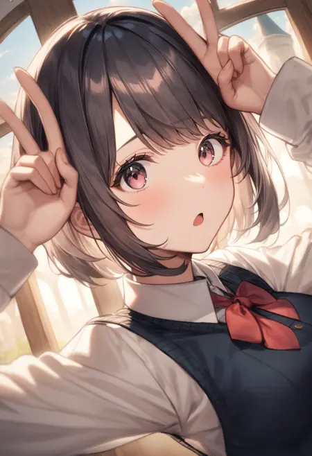 在头部顶部附近做出双手比V字手势,形似兔耳的LoRA。
