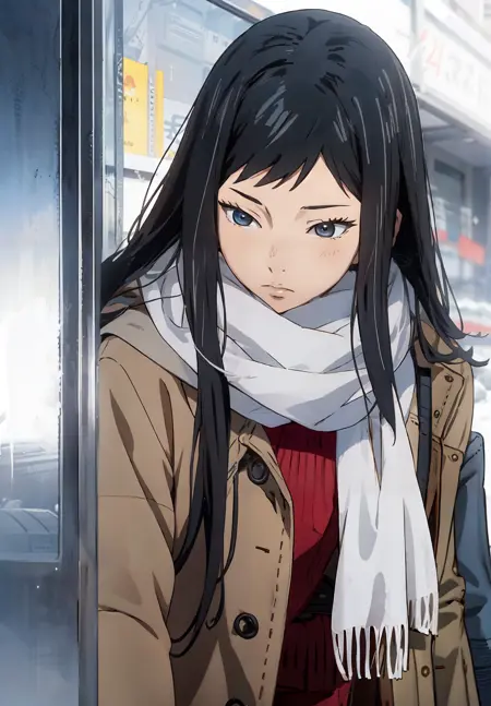 ロングヘア、ジャケット、スカーフ、コート、レターボックス、ホワイトスカーフ