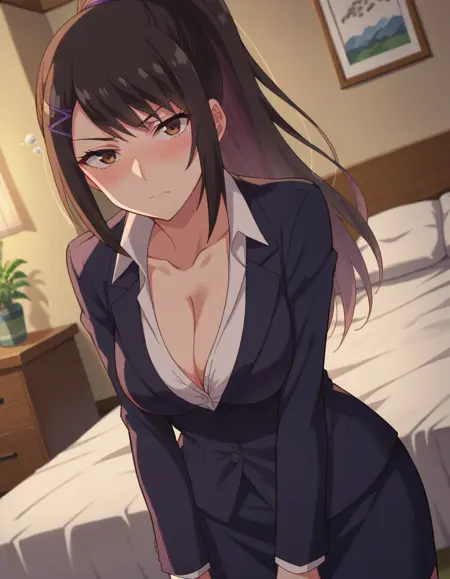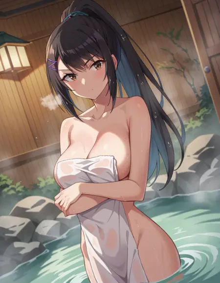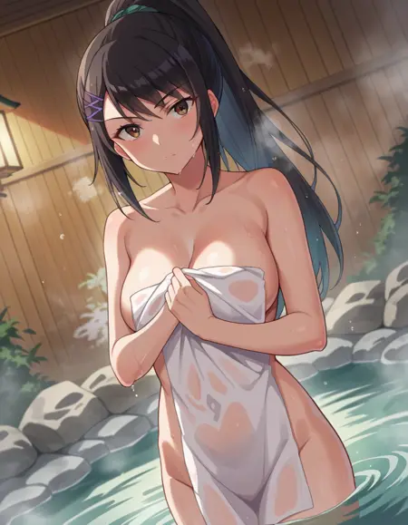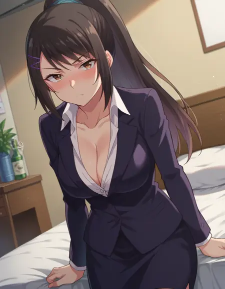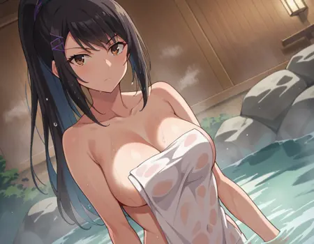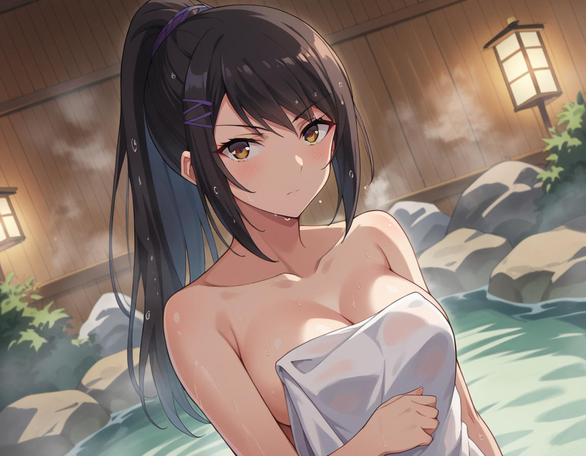 sae chabashira,长发,黑发,发饰,棕眼,马尾,发夹,